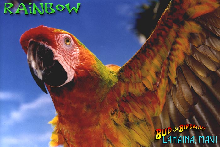 Rainbow in a dark closet for almost a year! The day I bought Rainbow he said, "Hallelujah!" I thought that he was a Military Macaw with